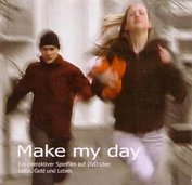 Jahrgangsstufe 13 (03/04) der Bettina Schule & Gallus Zentrum, Frankfurt/M Make my day 2003 - 30:00 - DVD - Interaktiver Spielfilm Wer kennt das nicht? Du wachst morgens auf und der Tag ist schon gelaufen. Sam sieht es genauso. Ihr Freund ist weg. Sie hat keine Knete und ist total frustriert. Aber an diesem Morgen weckt sie eine geheimnisvolle Stimme aus dem Radio und gibt ihr die große Chance, ihr Leben total zu verändern. Sie muss heute nur die richtigen Entscheidungen treffen. Nein. Halt. Nicht ganz. Das Publikum muss diese Entscheidungen treffen, damit Sam ihr Glück finden kann. |